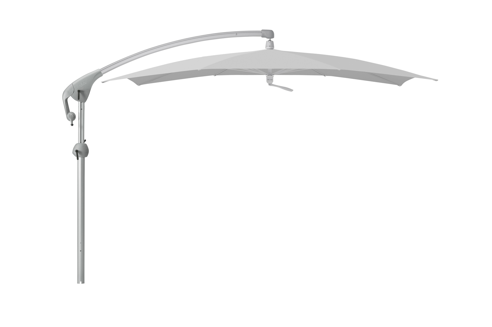 Der robuste Aluminiummast kann dabei platzsparend an der Tischecke stehen und den Schatten souverän steuern - so lässt er sich u.a. nicht nur als Sonnenschirm, sondern auch sehr gut als vertikaler Sichtschutz einsetzen.