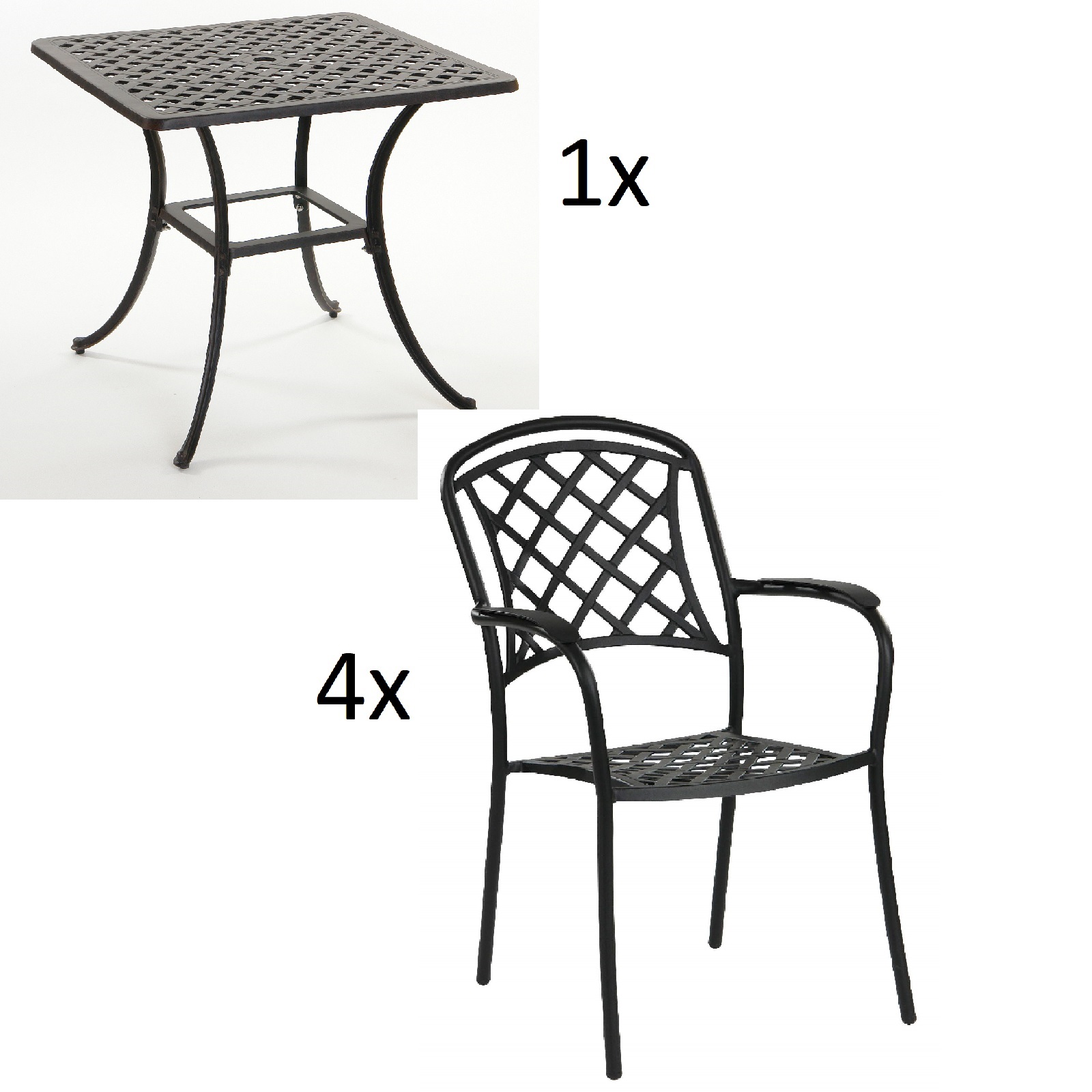 - Tisch: ca. 80x80x74 cm (BxTxH)