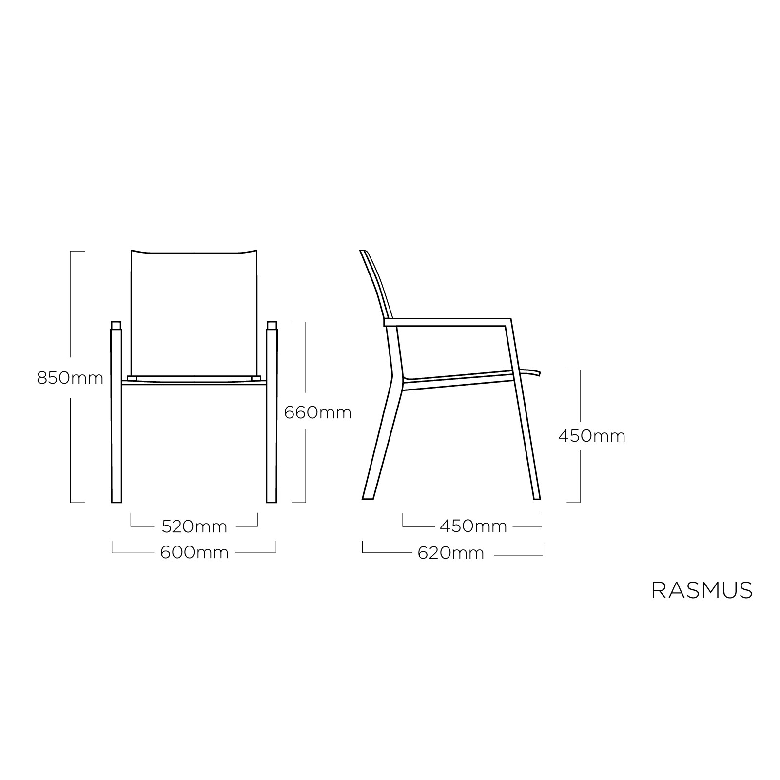Der Stapelstuhl Rasmus von Kettler bietet ein harmonisches Design und hohen Sitzkomfort durch die gemütliche Polsterung mit schnelltrocknendem Schaumstoff. Das verwendete, formstabile Sunbrella®-Gewebe ist luftdurchlässig, schnelltrocknend und absolut wetterfest. Mehrere Stapelsessel (separat erhältlich) können bei Nichtgebrauch platzsparend übereinander gestapelt werden.