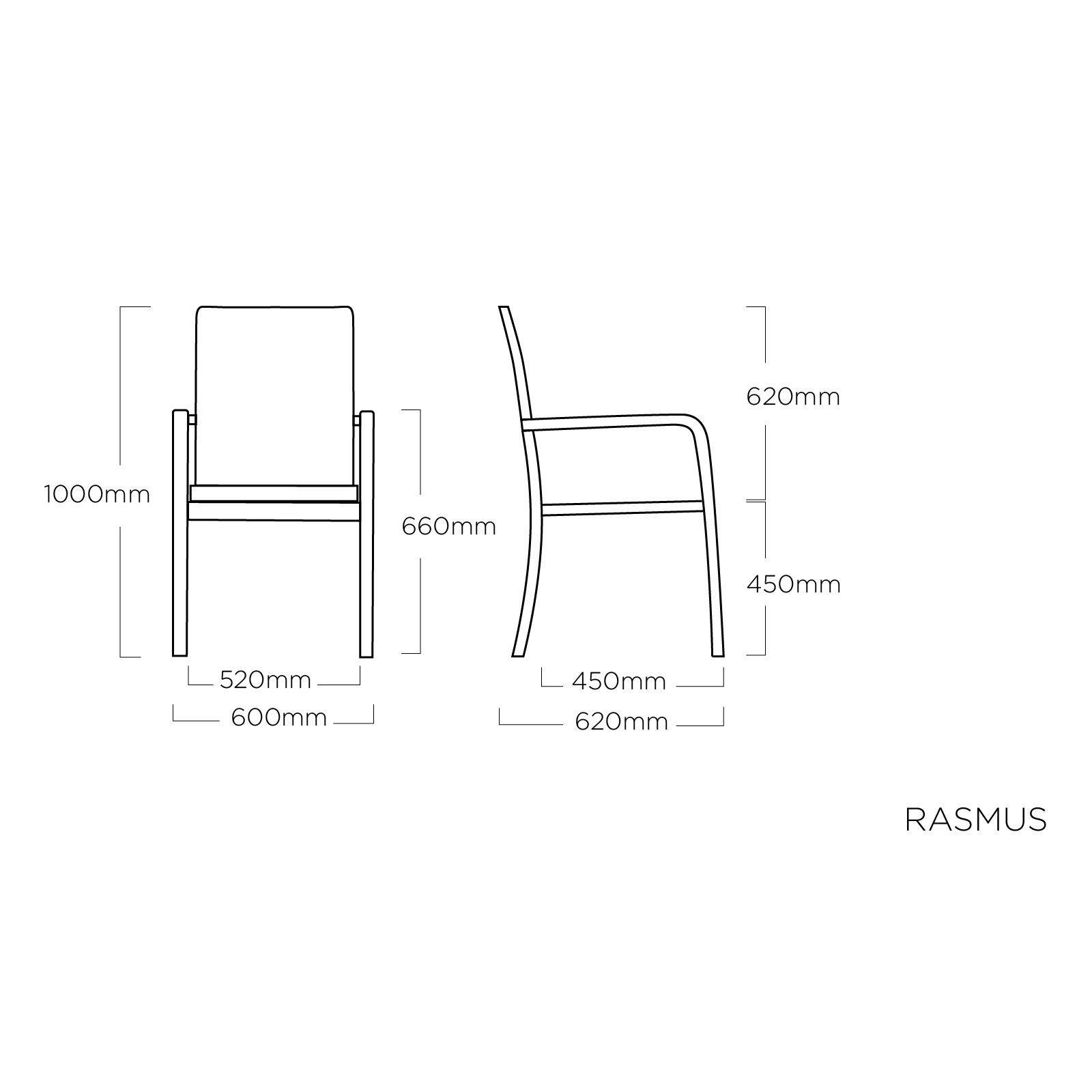Der Stapelstuhl Rasmus von Kettler bietet durch die hohe Rückenlehne ein harmonisches Design und hohen Sitzkomfort. Das verwendete, formstabile Sunbrella®-Gewebe ist luftdurchlässig, schnelltrocknend und absolut wetterfest. Mehrere Stapelsessel (separat erhältlich) können bei Nichtgebrauch platzsparend übereinander gestapelt werden.