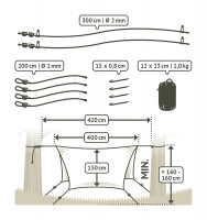 - Seil: 2 x ca. 300 cm und 4 x ca. 200 cm (Ø 2mm)
