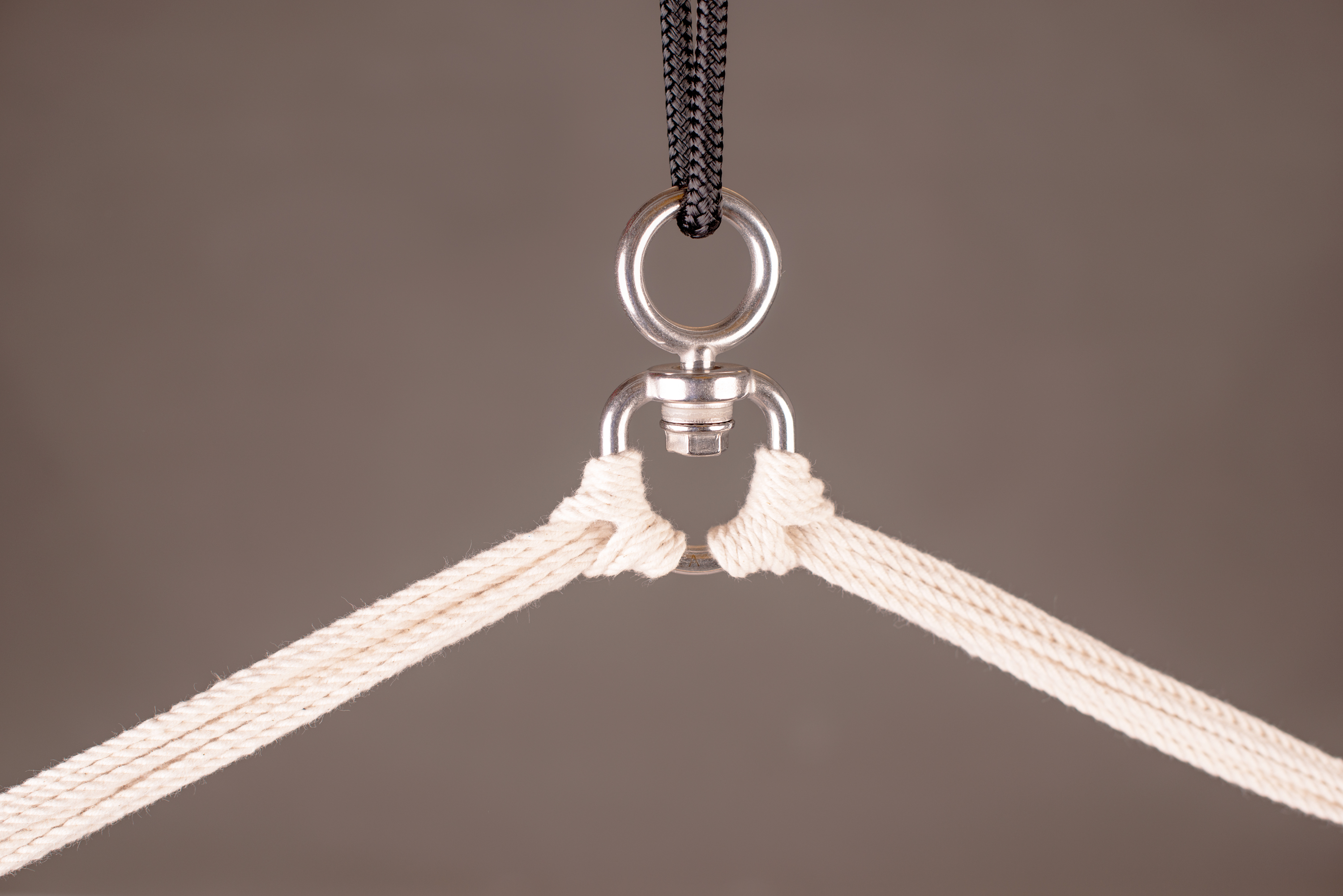 Dank eines speziellen Drehwirbels können Sie sich in dem Hängestuhl sicher und bequem um 360° drehen, ohne dass sich die Schnüre der Aufhängung verdrehen. Die Vielzahl an Aufhängeschnüren sorgt für die optimale Gewichtsverteilung