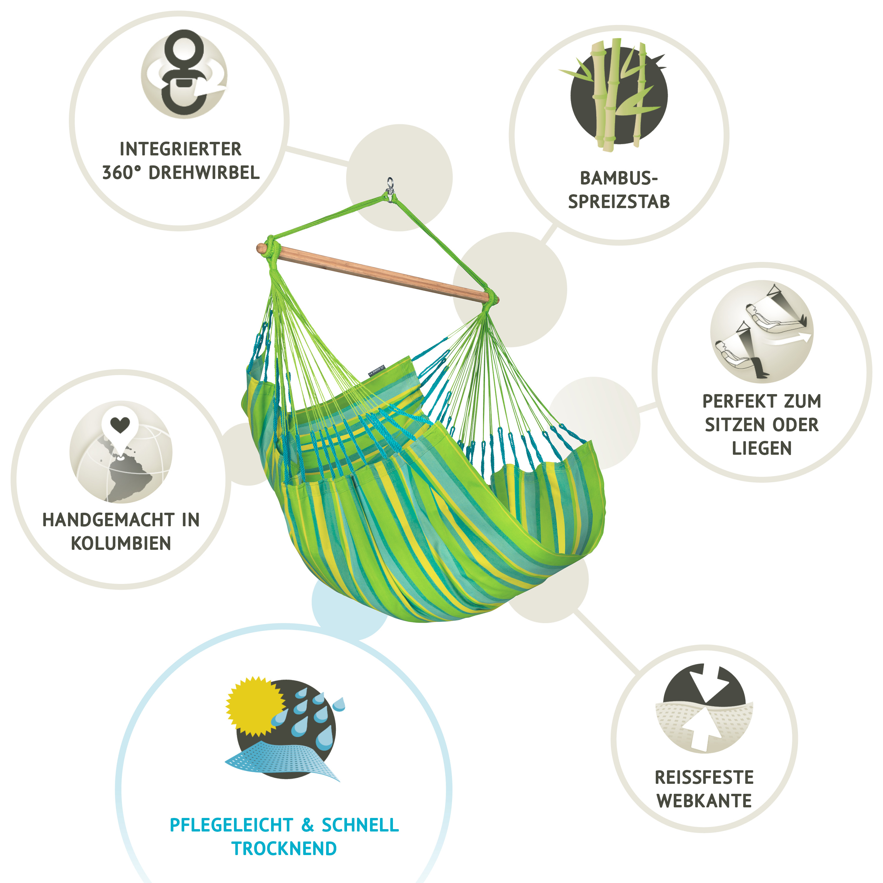 Eigenschaften "La Siesta Hängesessel Kingsize DOMINGO lime grün Lounger Outdoor Hängestuhl"