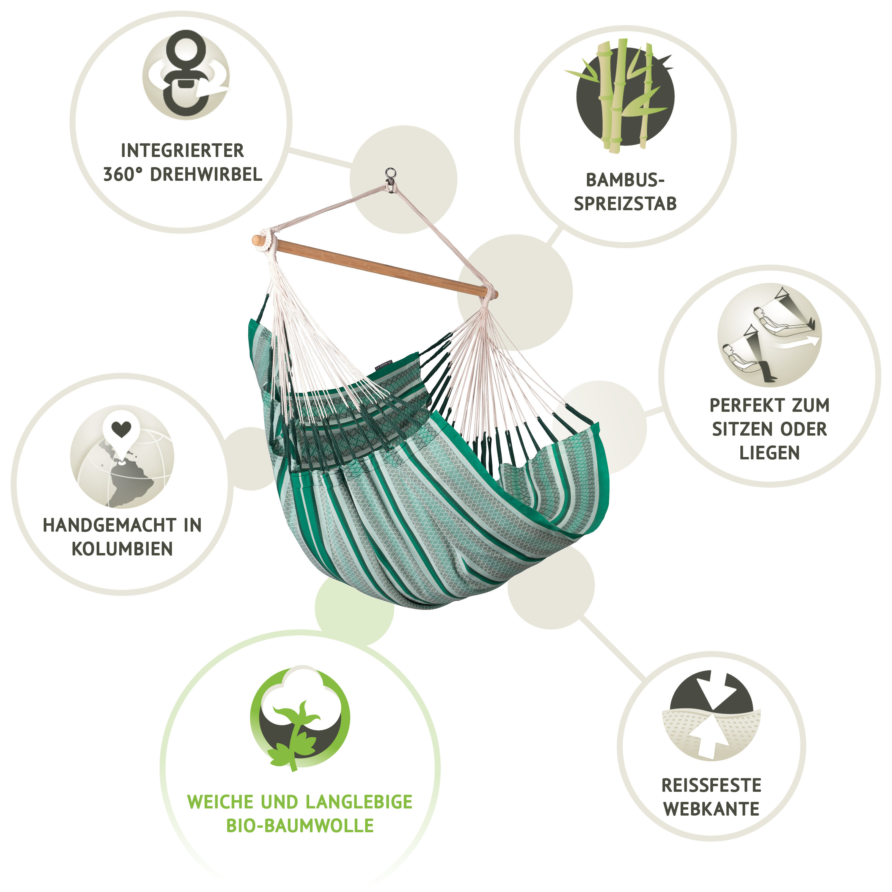 Eigenschaften "La Siesta Hängesessel Kingsize HABANA agave grün aus Bio-Baumwolle Hängestuhl"