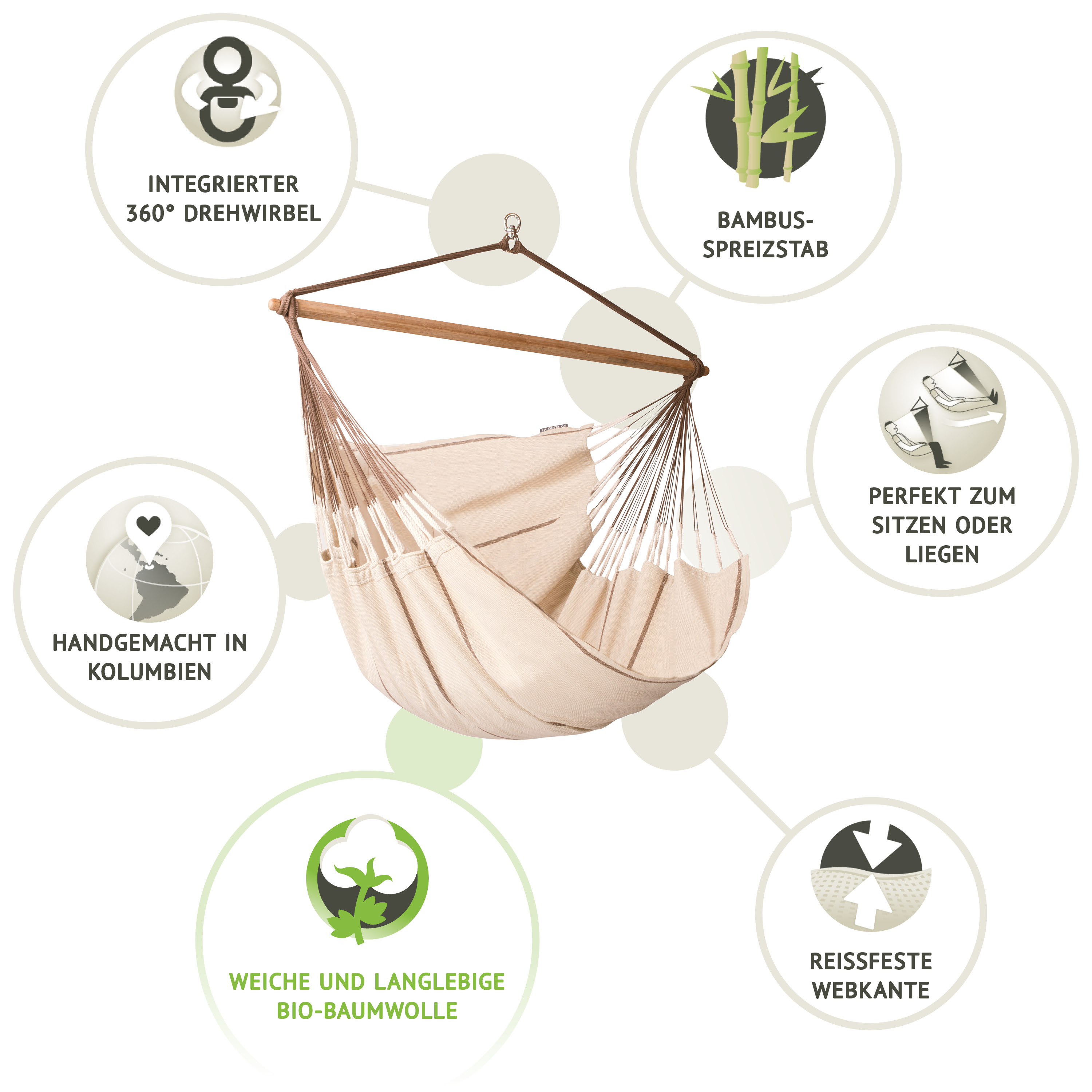 Eigenschaften "La Siesta Hängesessel Kingsize HABANA latte creme aus Bio-Baumwolle Hängestuhl"