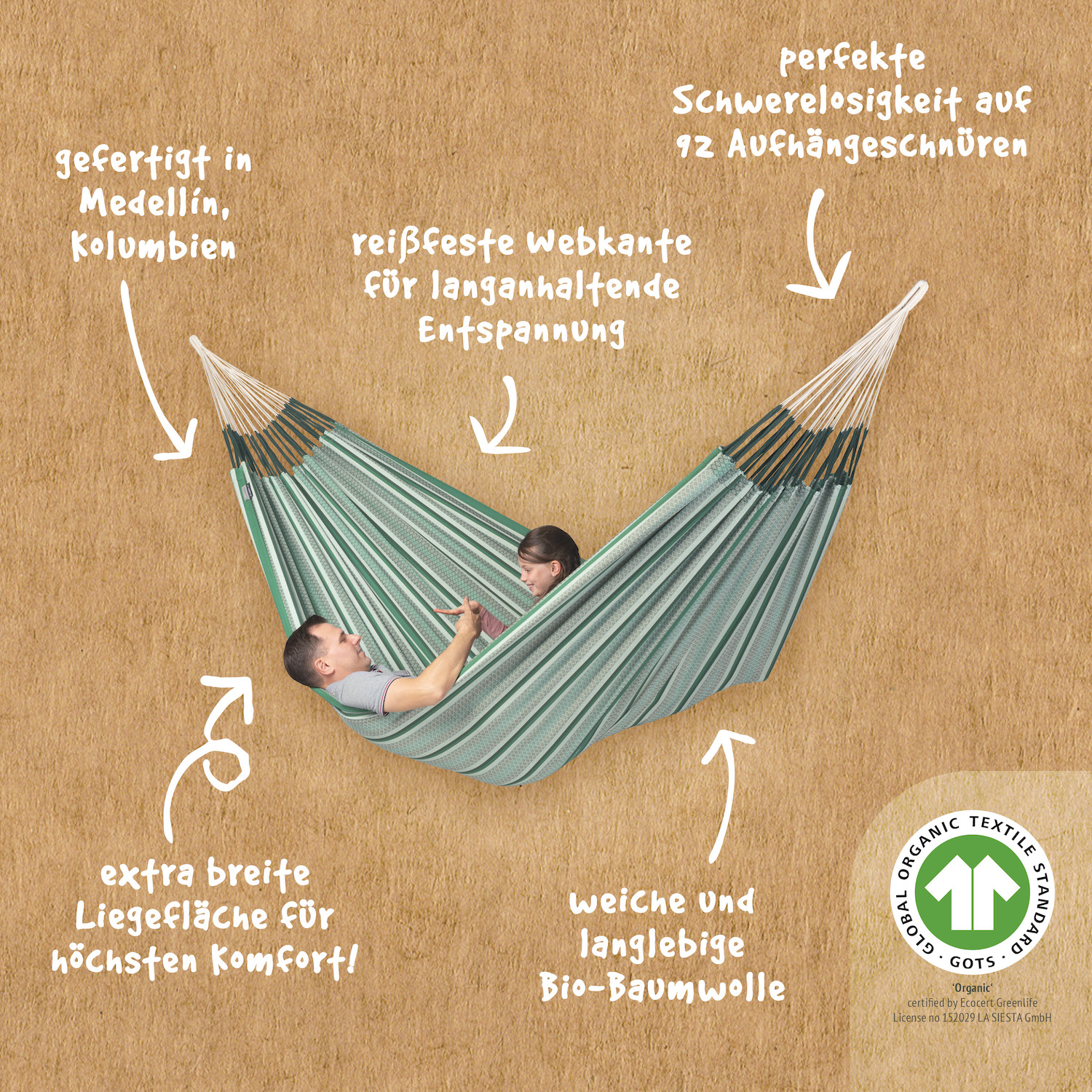 Eigenschaften "La Siesta Kingsize-Hängematte MODESTA agave grün aus Bio-Baumwolle Familienhängematte XXL"