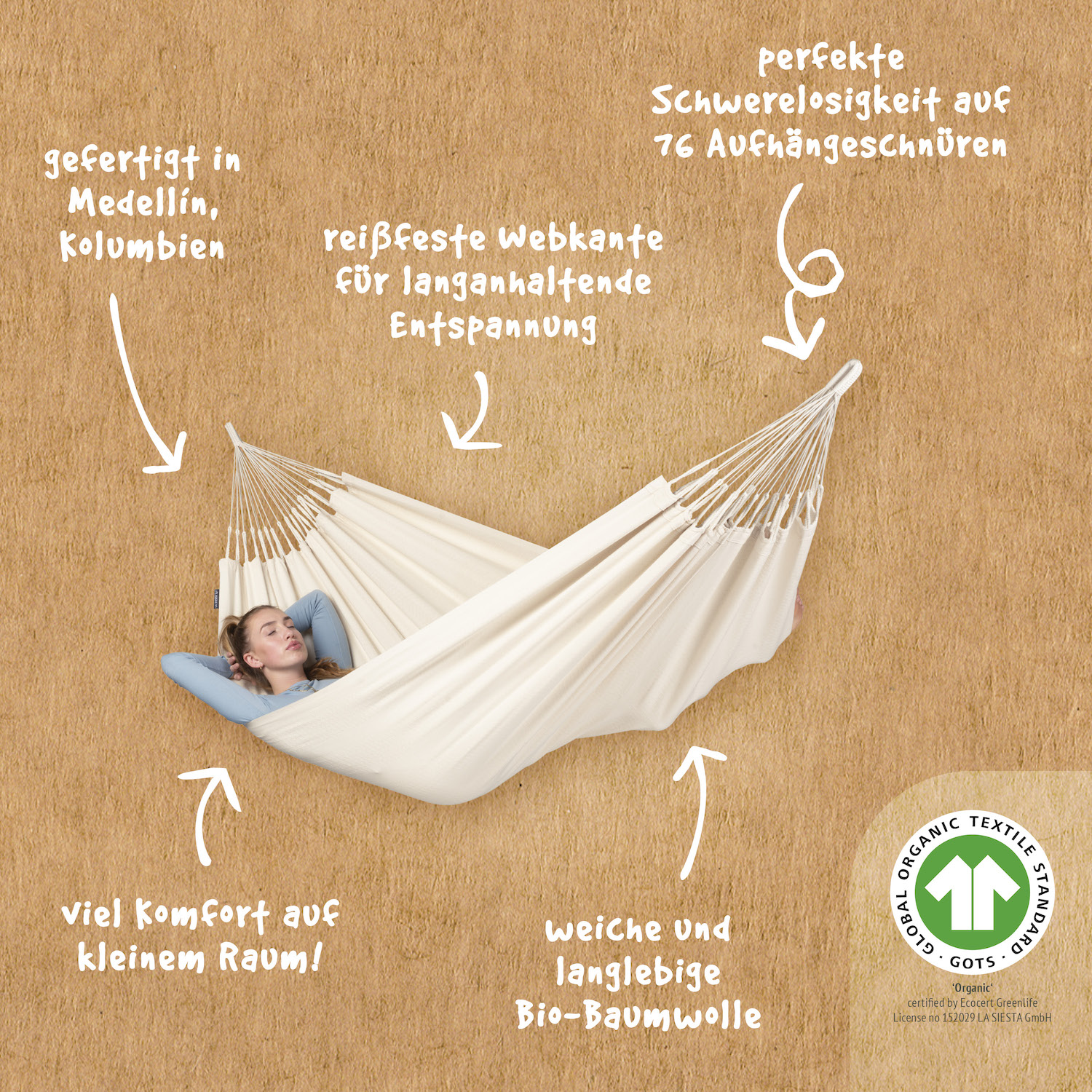 Eigenschaften "La Siesta Single-Hängematte MODESTA latte creme Klassische Einzel-Hängematte aus Bio-Baumwolle"