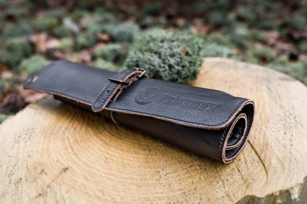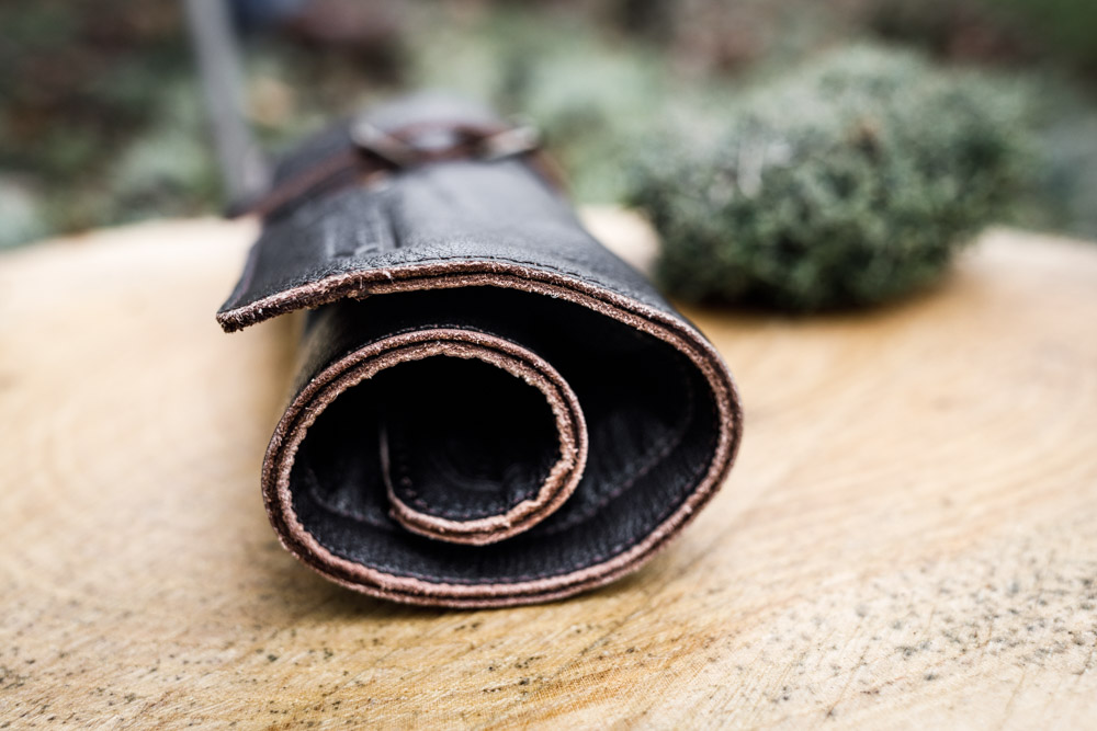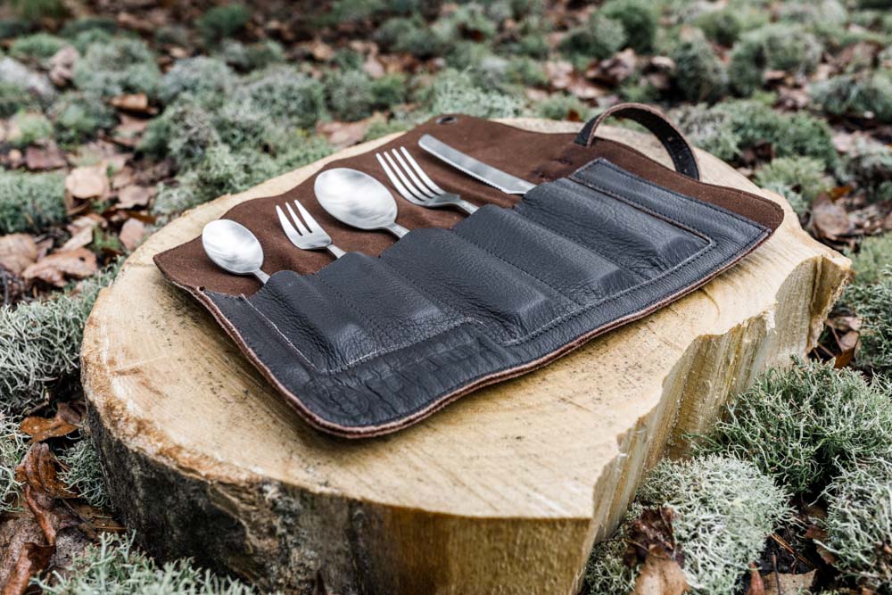 - Praktisch aufbewahrt: zusammenrollbare Bestecktasche aus Leder