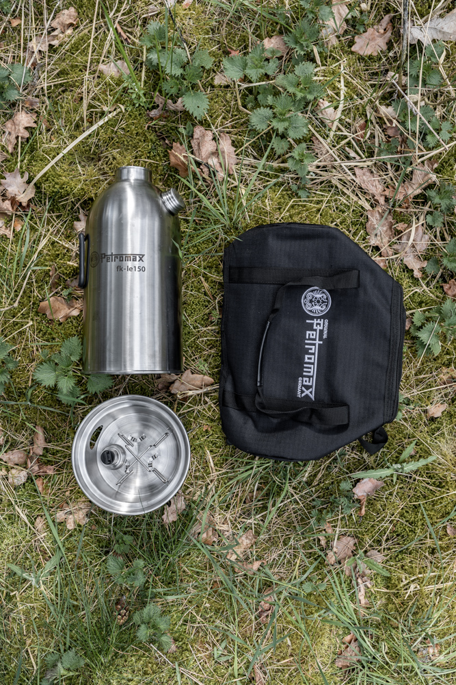 Die Petromax Feuerkanne aus Edelstahl mit einem Fassungsvermögen von 1,5 Litern ist beim Camping oder Trekking ein praktischer Wasserkocher, mit dem Sie spielend einfach in kürzester Zeit heißes Wasser erhalten. Zusätzlich kann die Petromax Feuerkanne auch als Kocher für kleine Töpfe oder Kessel genutzt werden.