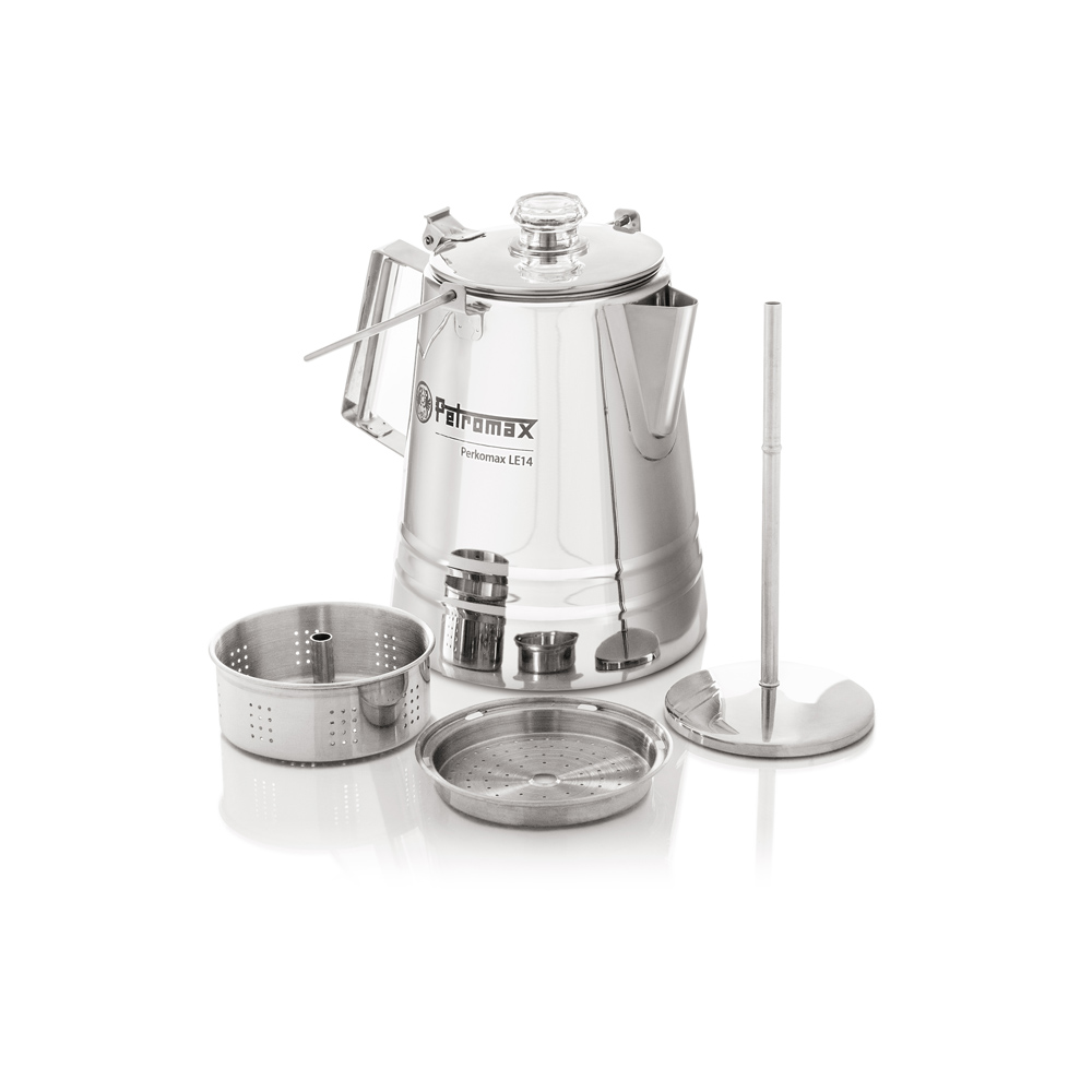 Mit dem Petromax Perkolator Perkomax le14 können Sie Ihren Kaffee ganz bequem immer dort zubereiten, wo Sie ihn trinken möchten. Einzige Voraussetzung ist eine Hitzequelle zum Erwärmen des Wassers - Grill, Feuerstelle, Gaskocher oder auch der heimische Herd. Der geniale Edelstahl Perkolator von Petromax mit einem Fassungsvermögen von 2,1 Litern ist somit auch perfekt, um aromatischen Kaffee und Tee unterwegs beim Camping, Angeln, Picknick und anderen Outdoor-Aktivitäten zuzubereiten.