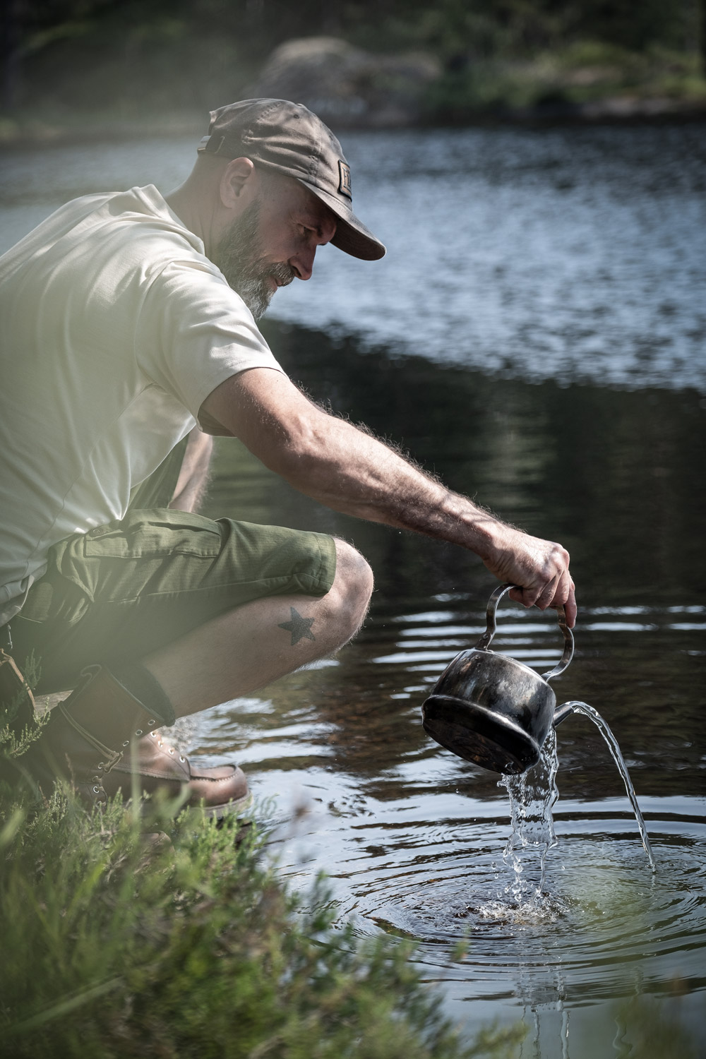 Eine angenehme und sichere Handhabung ermöglicht der dreifach gebogene, austarierte Henkel, mit dessen Hilfe sich der Kessel auch problemlos über einer Feuerstelle aufhängen und zum Transport am Rucksack befestigen lässt.