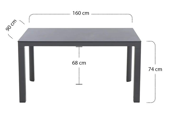 Mit seinem rostfreien Aluminiumunterbau in matt anthrazit bietet dieser Gartentisch optimale Wetterbeständigkeit und Stabilität. Der Tisch hat eine Unterschubhöhe von ca. 68 cm. Um den Tisch auch bei kleinen Unebenheiten gerade ausrichten zu können, sind an den Füßen verstellbare Fußkappen angebracht. Da kann selbst ein Ball nicht mehr wegrollen. Zahlreiche Stühle aus unserem Sortiment lassen sich wunderbar dazu kombinieren.
