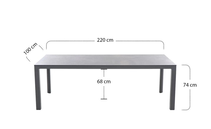 Eigenschaften "Siena Garden Silva Dining Tisch – 220 x 100 cm, Aluminium (matt anthrazit) & HPL Titan"