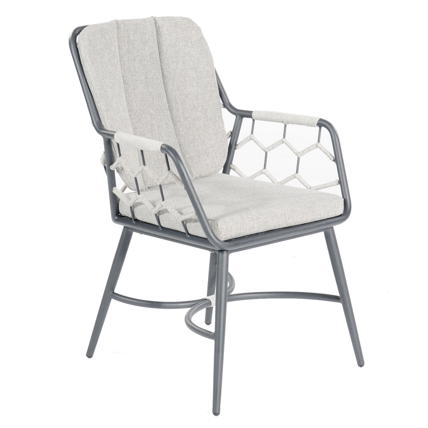 - Sitzfläche mit Polyrope in silber-grau bespannt