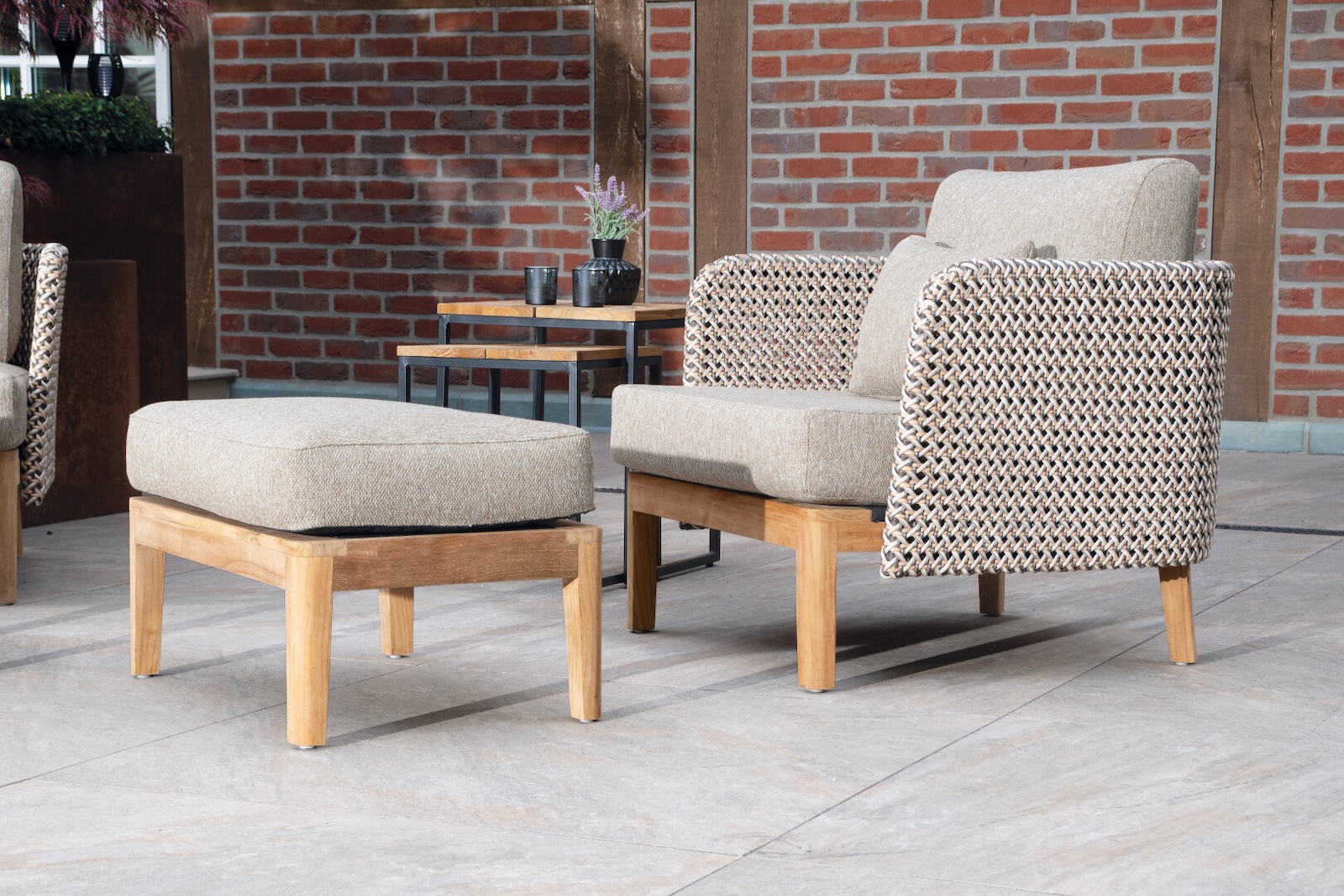 - Inkl. Sitz- und Rückenkissen und 2 kleine Kissen