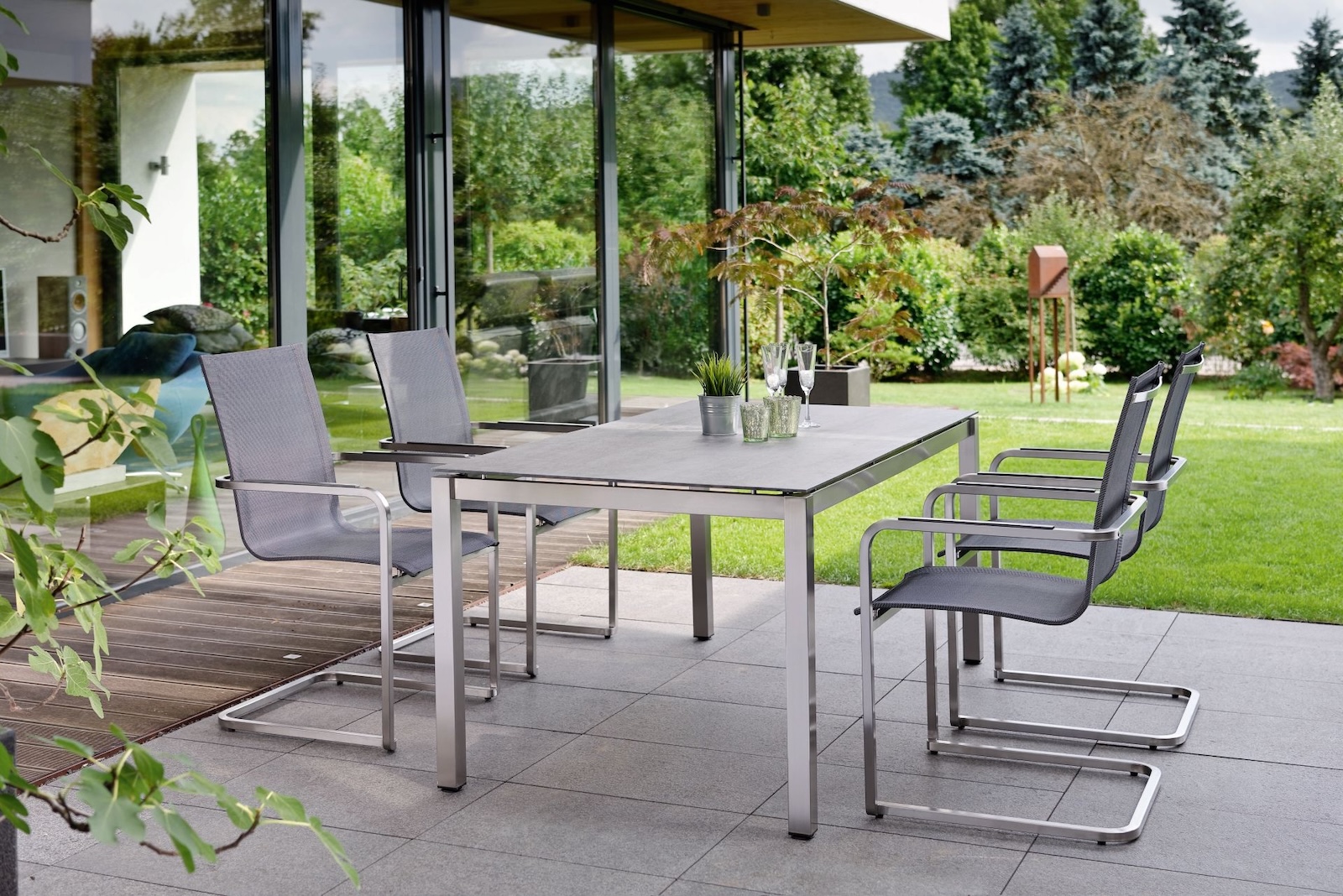 Eigenschaften "Stern 4er-Set Freischwinger Evoee Edelstahl/Textilen silbergrau/anthrazit Gartenstuhl"