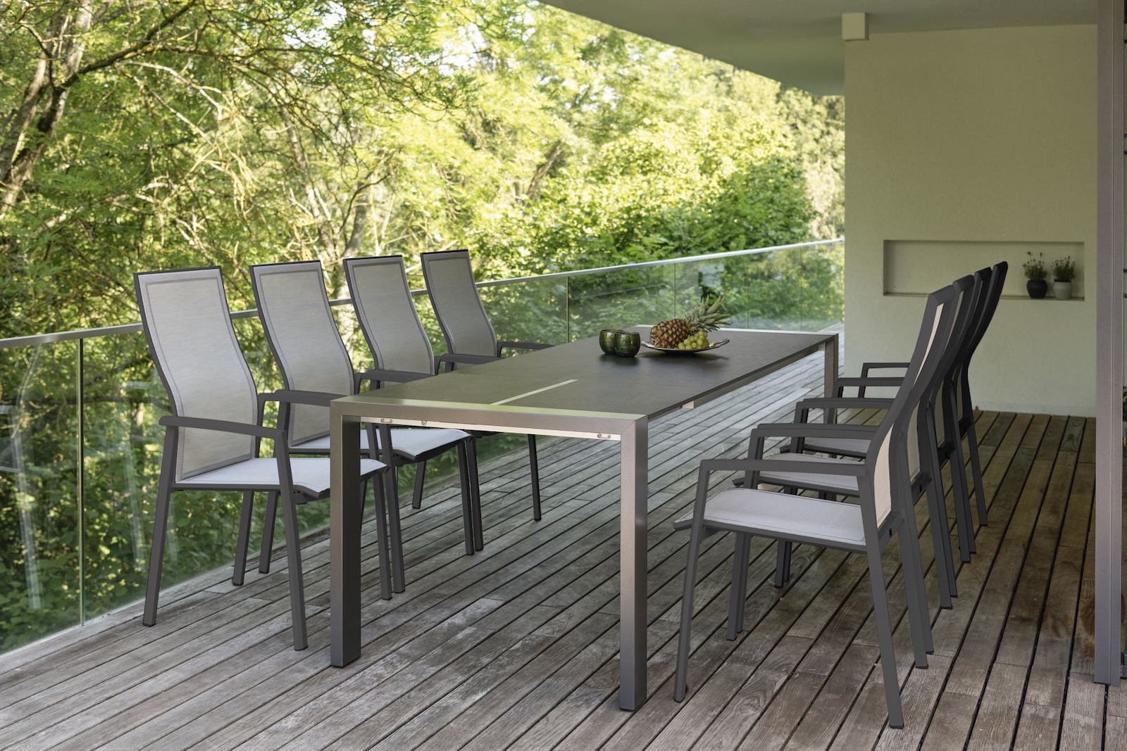 Stern 4er-Set Stapelsessel Kari Aluminium anthrazit/Textilen silber hohe Rückenlehne Gartenstuhl Stapelstuhl